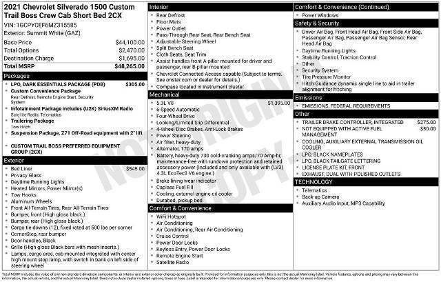- Custom Trail Boss Preferred Equipment Group includes standard equipment